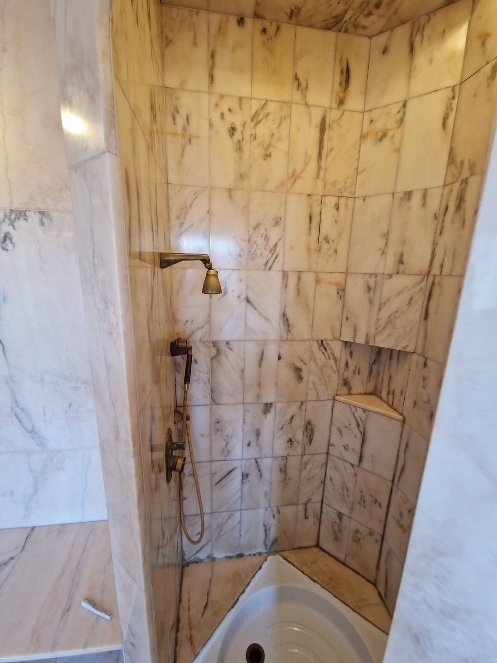 - Sélection des matériaux : Choisissez des matériaux durables et faciles à entretenir. Les options incluent carrelage, marbre, bois traité et verre trempé.